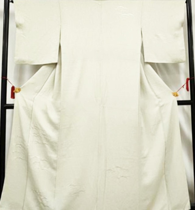 未使用品の着物を解いて、洗い張りをした反物から作られています。 This costume is created from an unused kimono that was carefully unstitched, washed (araihari), and re-tailored. 写真は解く前の着物の状態です。 The photos show the kimono before it was unstitched. ______________ 左)振袖 … 鬼しぼ縮緬 松尾光琳 吉祥文 ______________ 無地の右みごろを追加して… 【 舞踊家タイプ 】 よりオーセンティックを求める方に。 着物のように襟を合わせて着ます。 ______________ 納期 … 約3ヶ月 Delivery time … approximately 3 months 【 縫製予定サイズ(Planned Size)】 身丈(kimono length) … 175cm 裄(the length from the center of the back to the end of the sleeve) … 66cm 袖丈(sleeve length) … 105cm 身丈は[ 身長+15cm 〜 0 ]でお選びください。 Choose the kimono length based on your height (+15cm to 0).