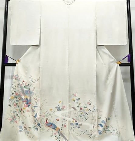 This costume is created from an unused kimono that was carefully unstitched, washed (araihari), and re-tailored.